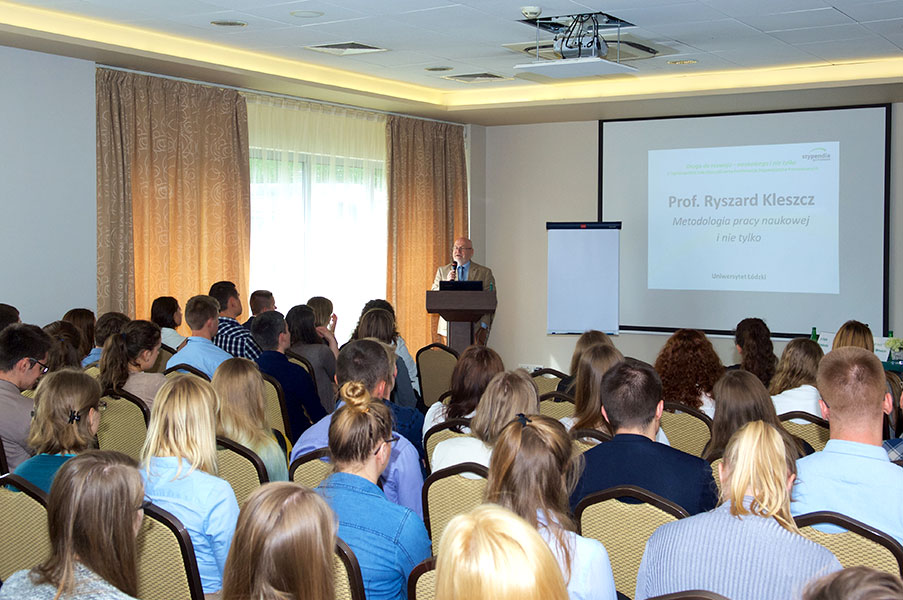 Pierwszego dnia konferencji stypendyści wysłuchali panelu eksperckiego, na którym wystąpili: dr Katarzyna Maniszewska, prof. dr hab. Marek Wroński i prof. dr hab. Ryszard Kleszcz oraz wystąpień stypendystów, którzy zaprezentowali rezultaty swojej dotychczasowej pracy naukowej, wyniki badań, podzielili się swoimi zainteresowaniami naukowymi i pasjami. Dzień zakończył się spotkaniem z wolontariuszami – przedstawicielami programu Projektor – wolontariat studencki, którzy z wielką pasją opowiedzieli o tym, czemu warto angażować się w działania społeczne.