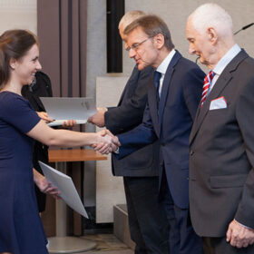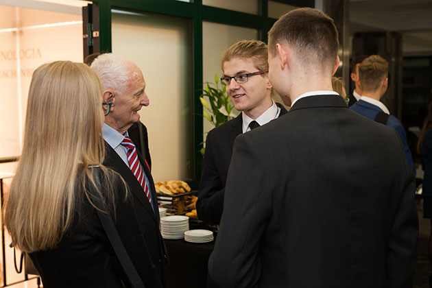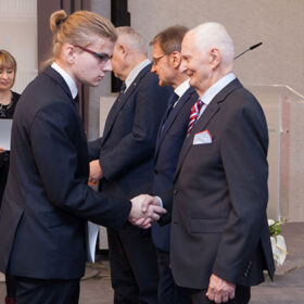 Czas studiów to czas w którym otwieracie się na to co nowe, poznajecie świat, zdobywacie wiedzę. Bądźcie otwarci dla tego świata, bądźcie otwarci na inność. I pamiętajcie, że ten czas jest wstępem do zdobycia rzeczywistej wiedzy, że na studiach nie wystarczy się nauczyć, trzeba sobie jeszcze zadać pytanie ‘Dlaczego?’ – i odpowiedź na to pytanie jest niesłychanie ważna. Liczę na to, że będziecie szczęśliwi, szczęśliwi realizacją Waszych pomysłów. Realizujcie Wasze marzenia. – tymi słowami, na zakończenie uroczystości, zwrócił się do stypendystów Profesor Jerzy Dietl, Prezes Fundacji Edukacyjnej Przedsiębiorczości.
